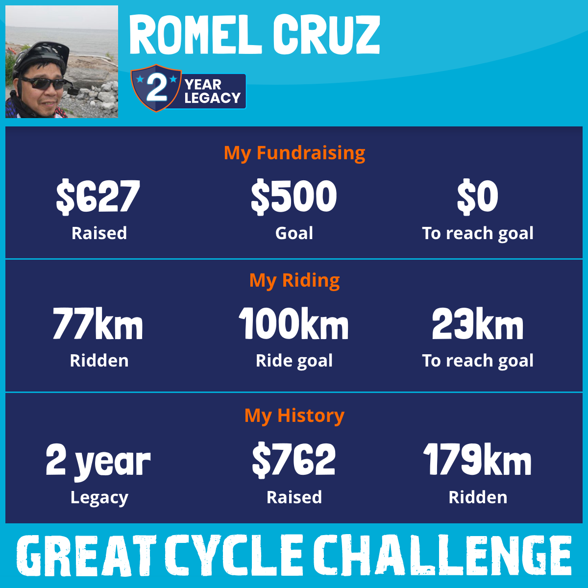 181 km Ridden$627 Raised2026