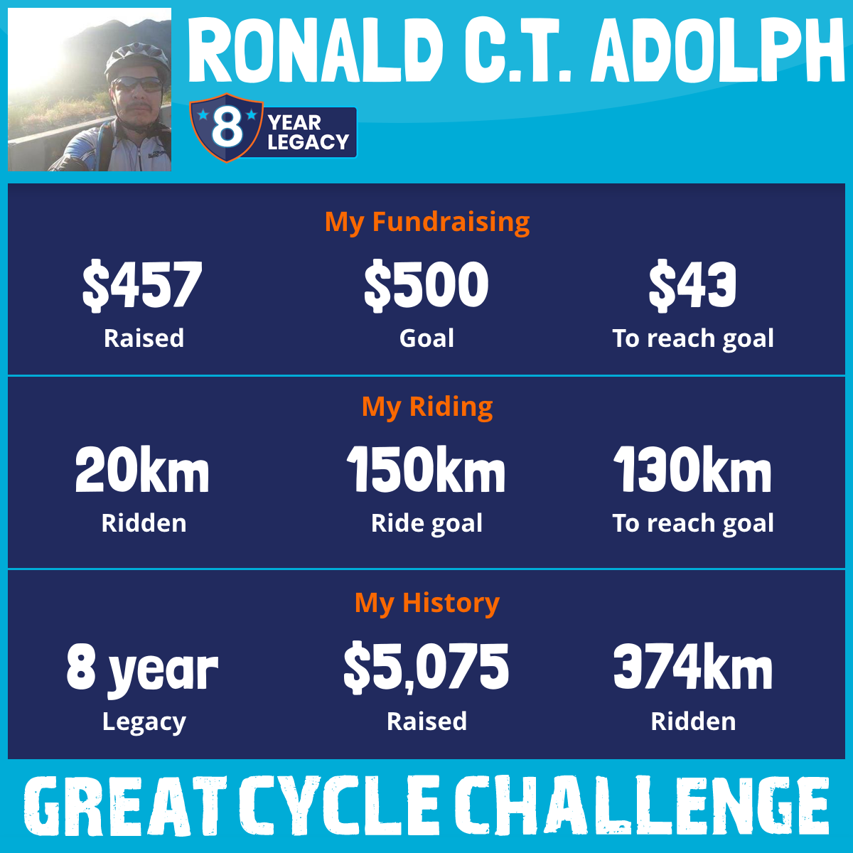 70 km Ridden$457 Raised2026