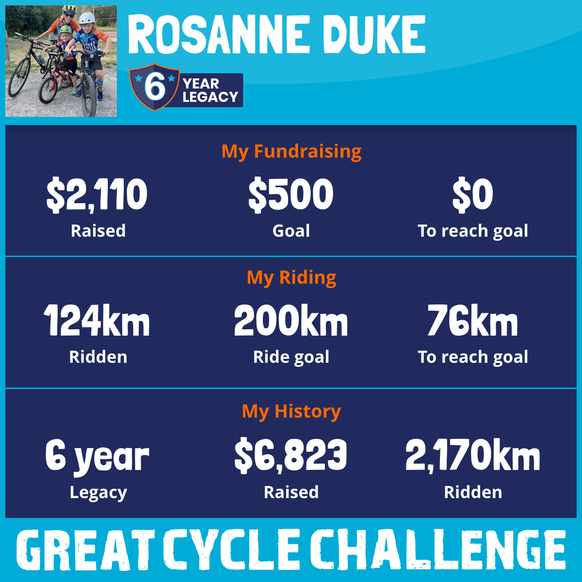 239 km Ridden$1,427 Raised2020