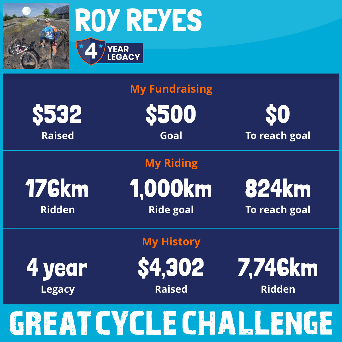 4,327 km Ridden$1,074 Raised2023