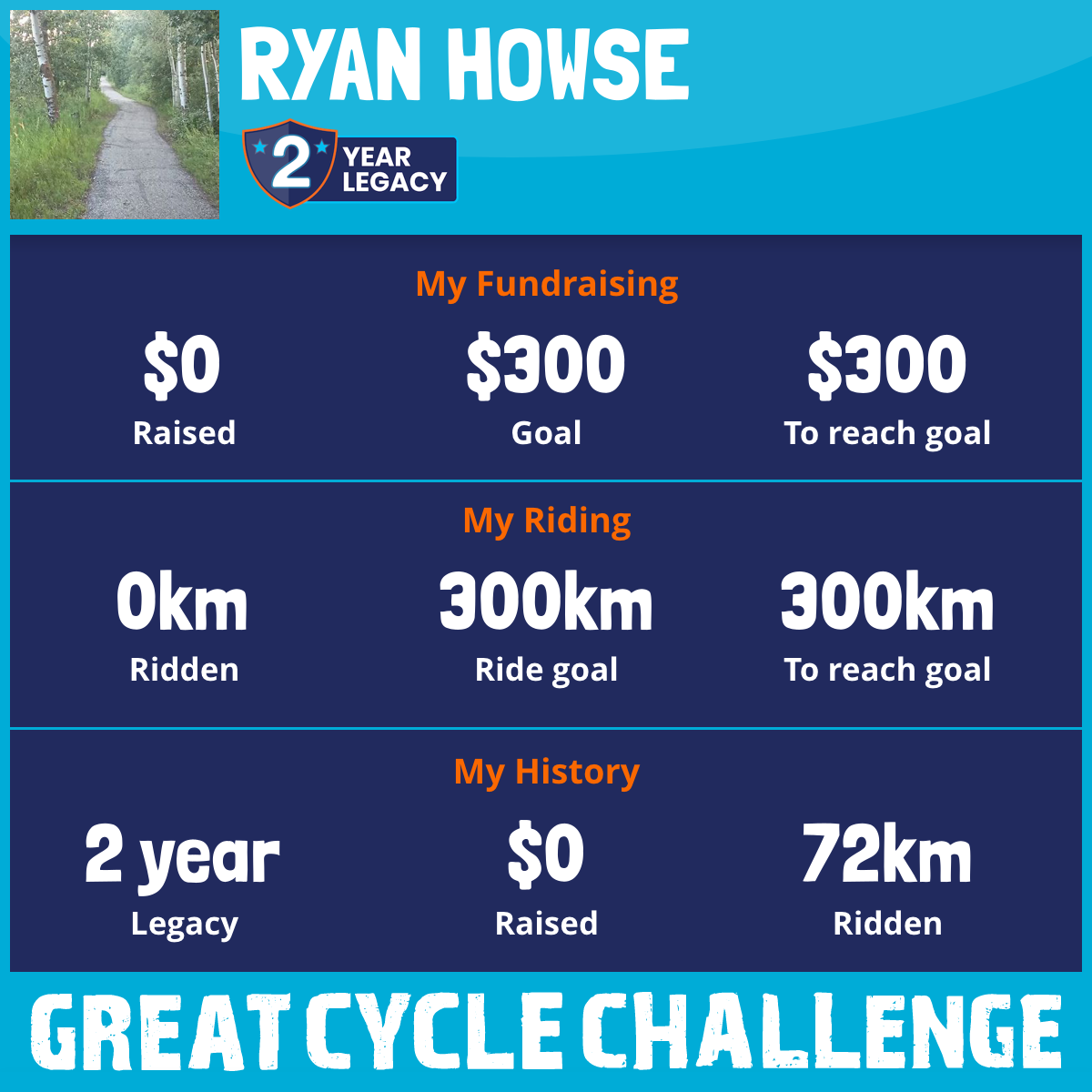 I am riding 300 km in memory of my grandmother, Ruby Howse. Please sponsor me and support my challenge to fight kids' cancer and save little lives.