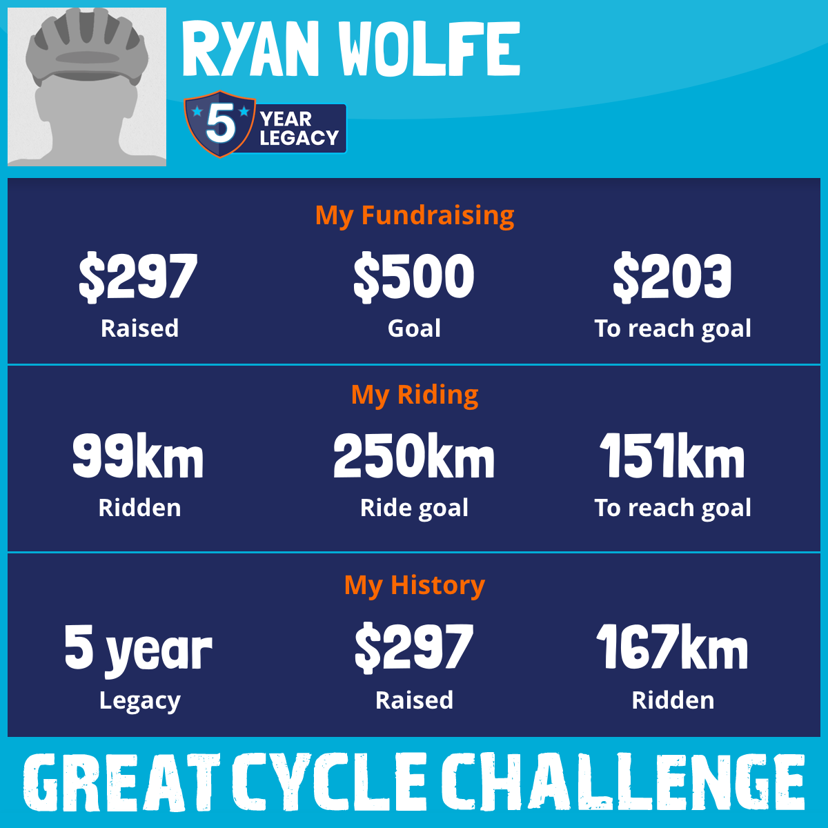 99 km Ridden$297 Raised2026