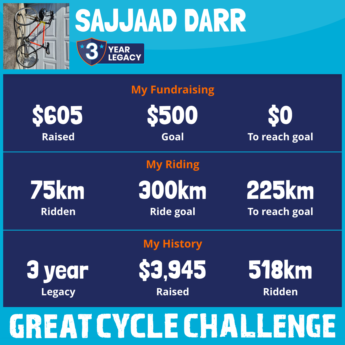 209 km Ridden$1,136 Raised2024