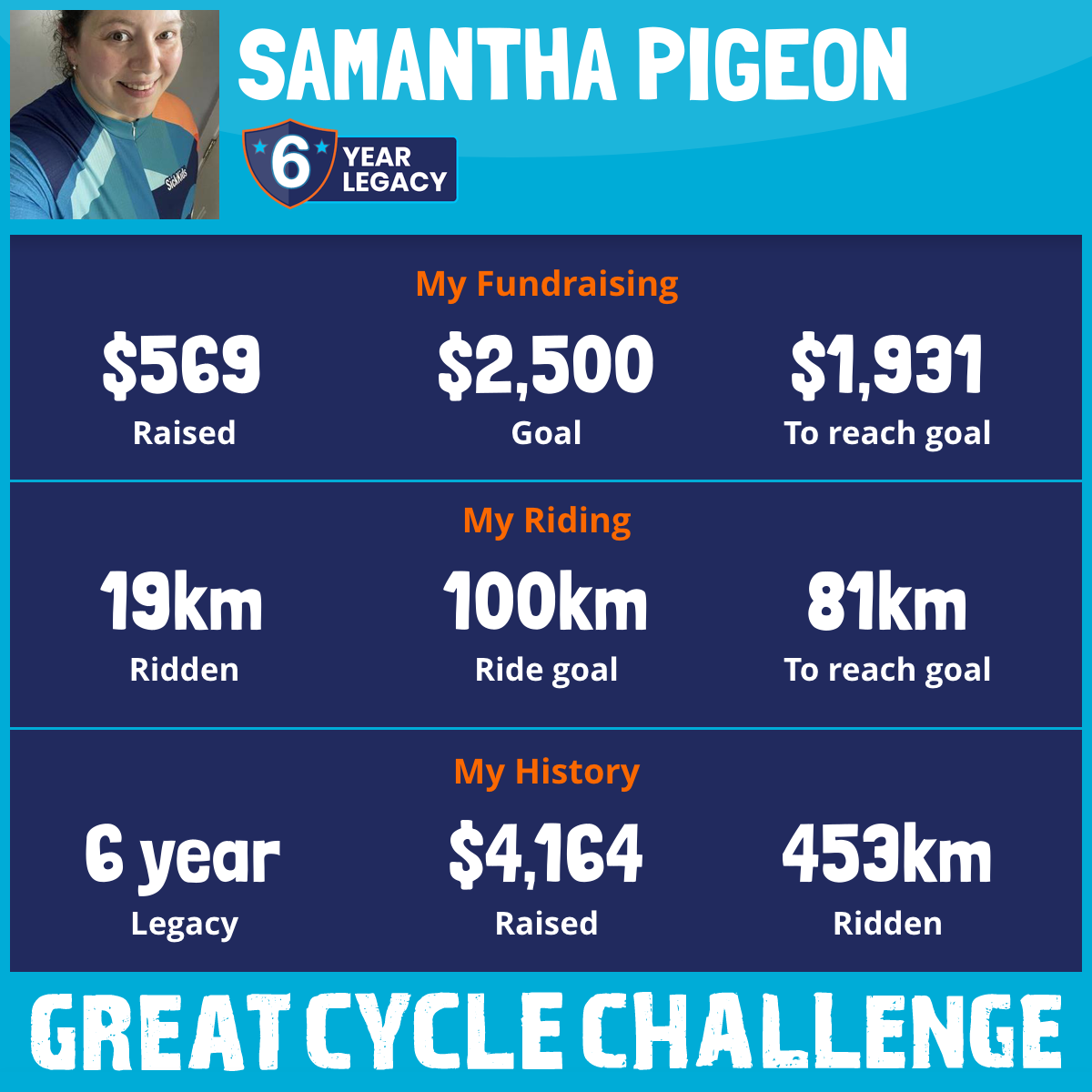 14 Aug 2025Thanks to my generous family, friends and colleagues we’ve crossed the $500 fundraising mark and added 50km to my target. I’ll now be aiming to ride 100km before the end of the month!! 😅
