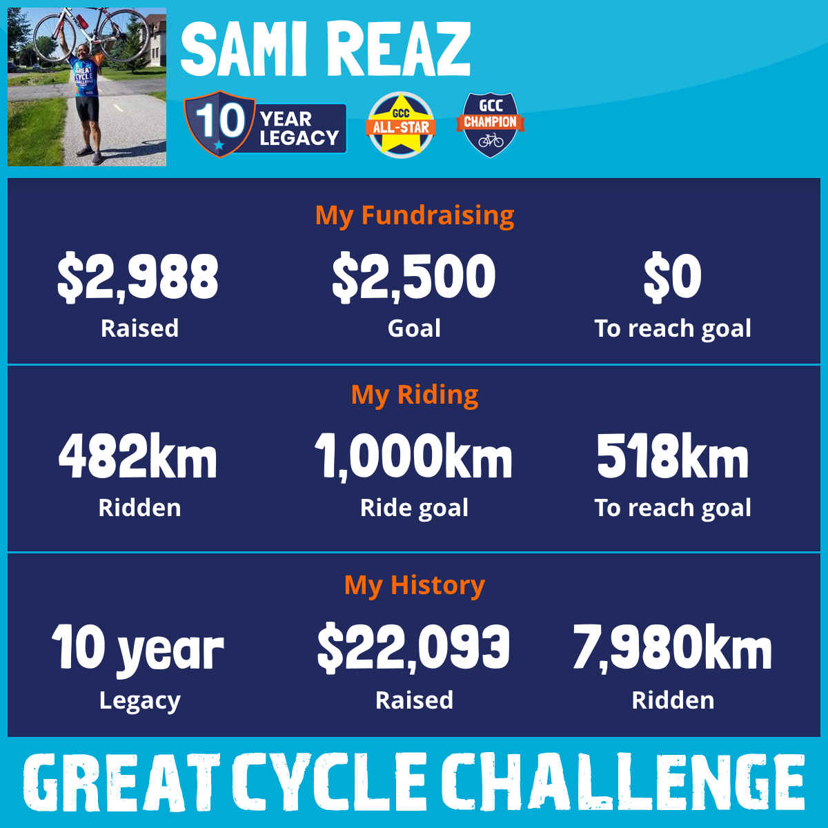 1,010 km Ridden$1,000 Raised2018