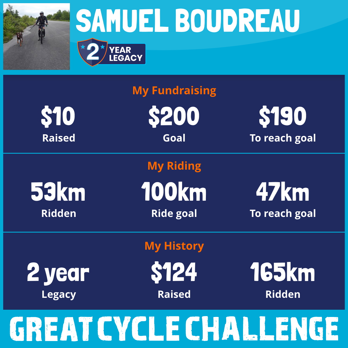 I am riding 100 km in memory of my uncle, Maurice Boudreau. Please sponsor me and support my challenge to fight kids' cancer and save little lives.