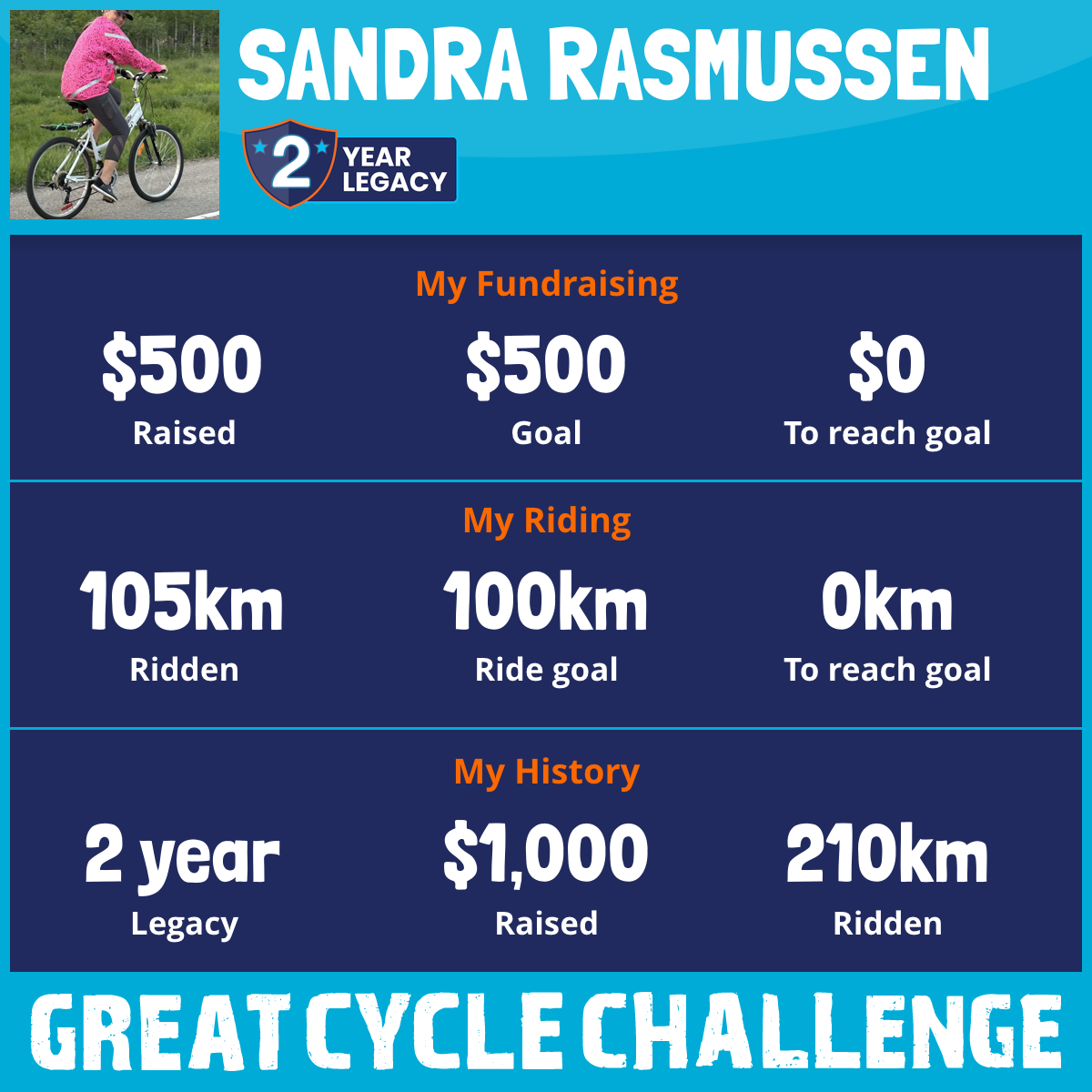 105 km Ridden$500 Raised2026