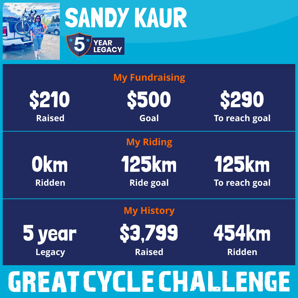 100 km Ridden$1,056 Raised2023