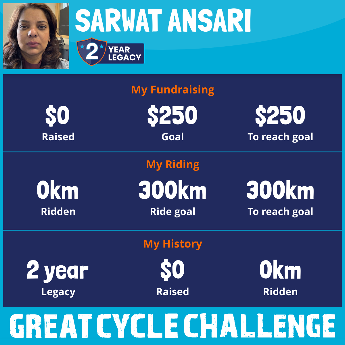 I am riding 300 km in memory of my sister, Omera. Please sponsor me and support my challenge to fight kids' cancer and save little lives.