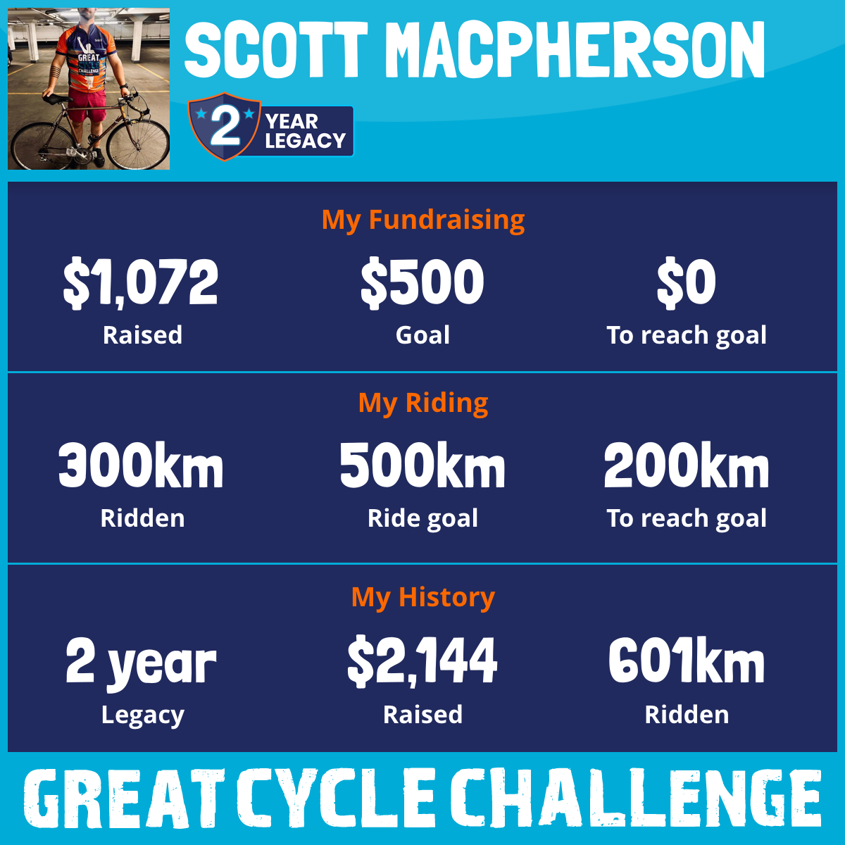 300 km Ridden$1,072 Raised2026