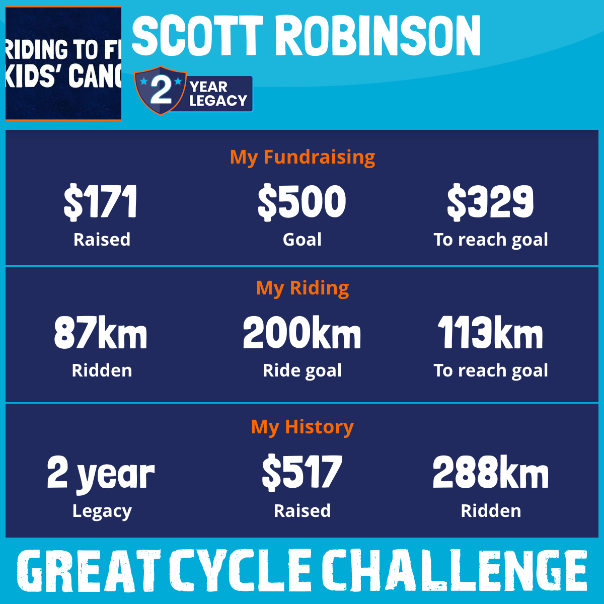 423 km Ridden$171 Raised2026
