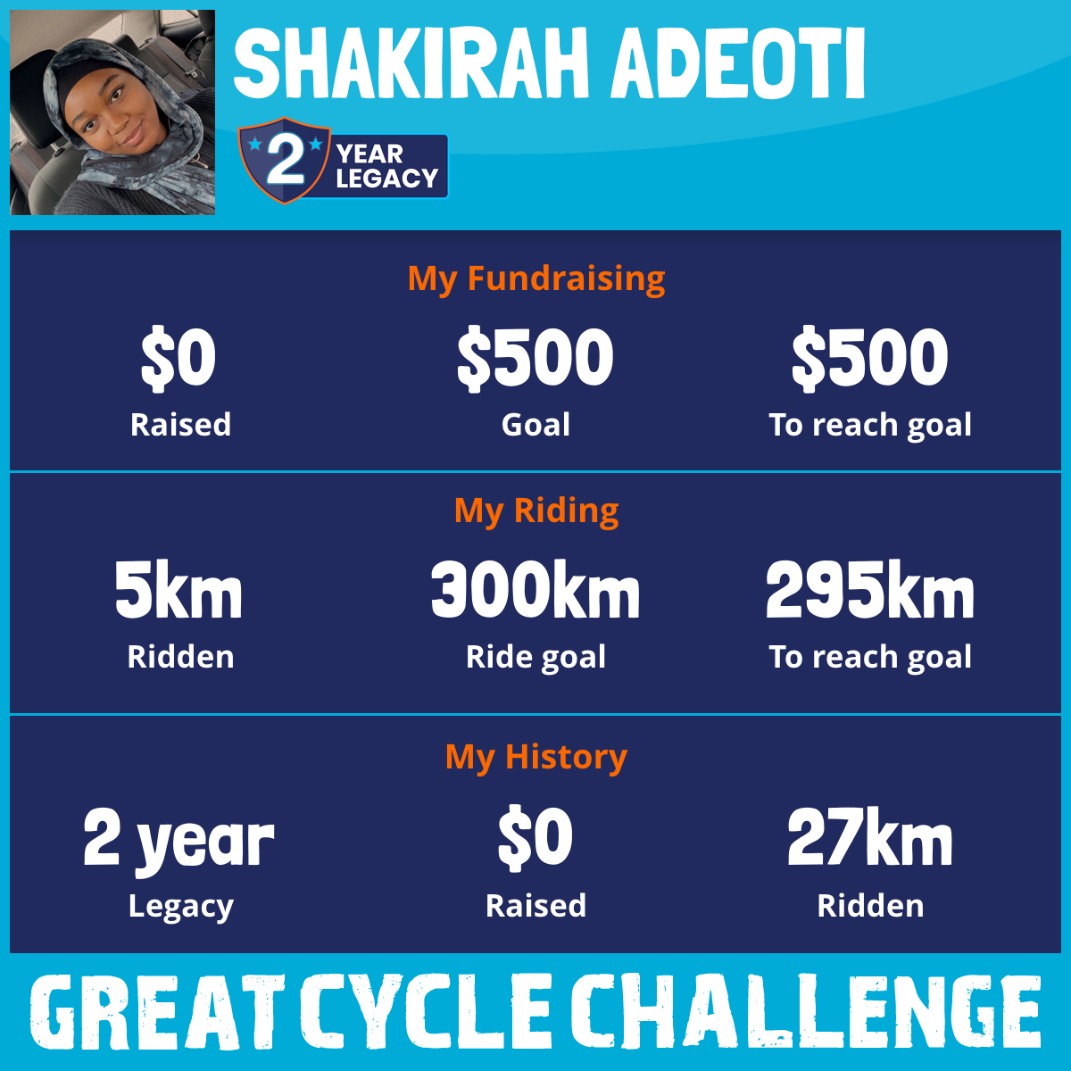 I am riding 300 km in memory of my grandmother, Bintu. Please sponsor me and support my challenge to fight kids' cancer and save little lives.