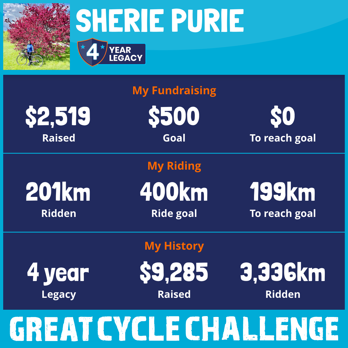 987 km Ridden$1,441 Raised2023