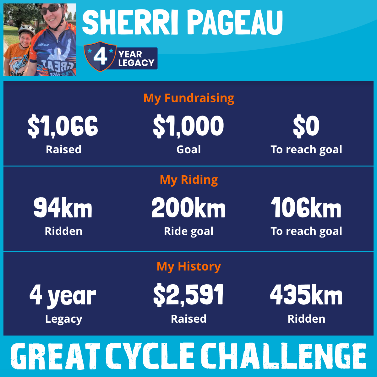 209 km Ridden$1,188 Raised2025