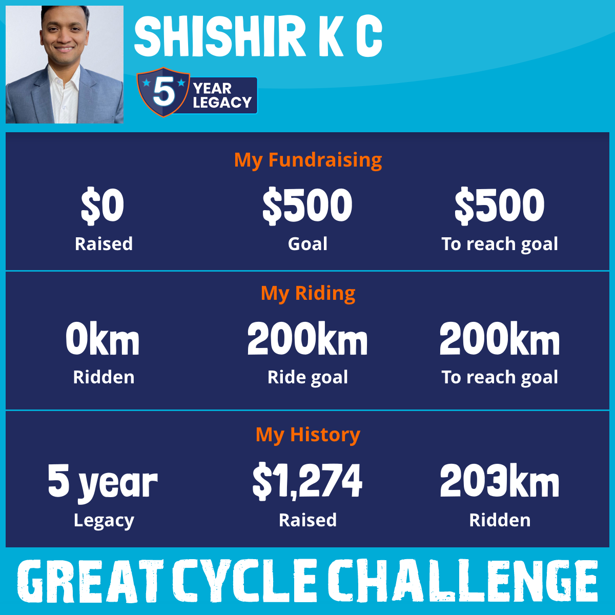 203 km Ridden$1,274 Raised2021
