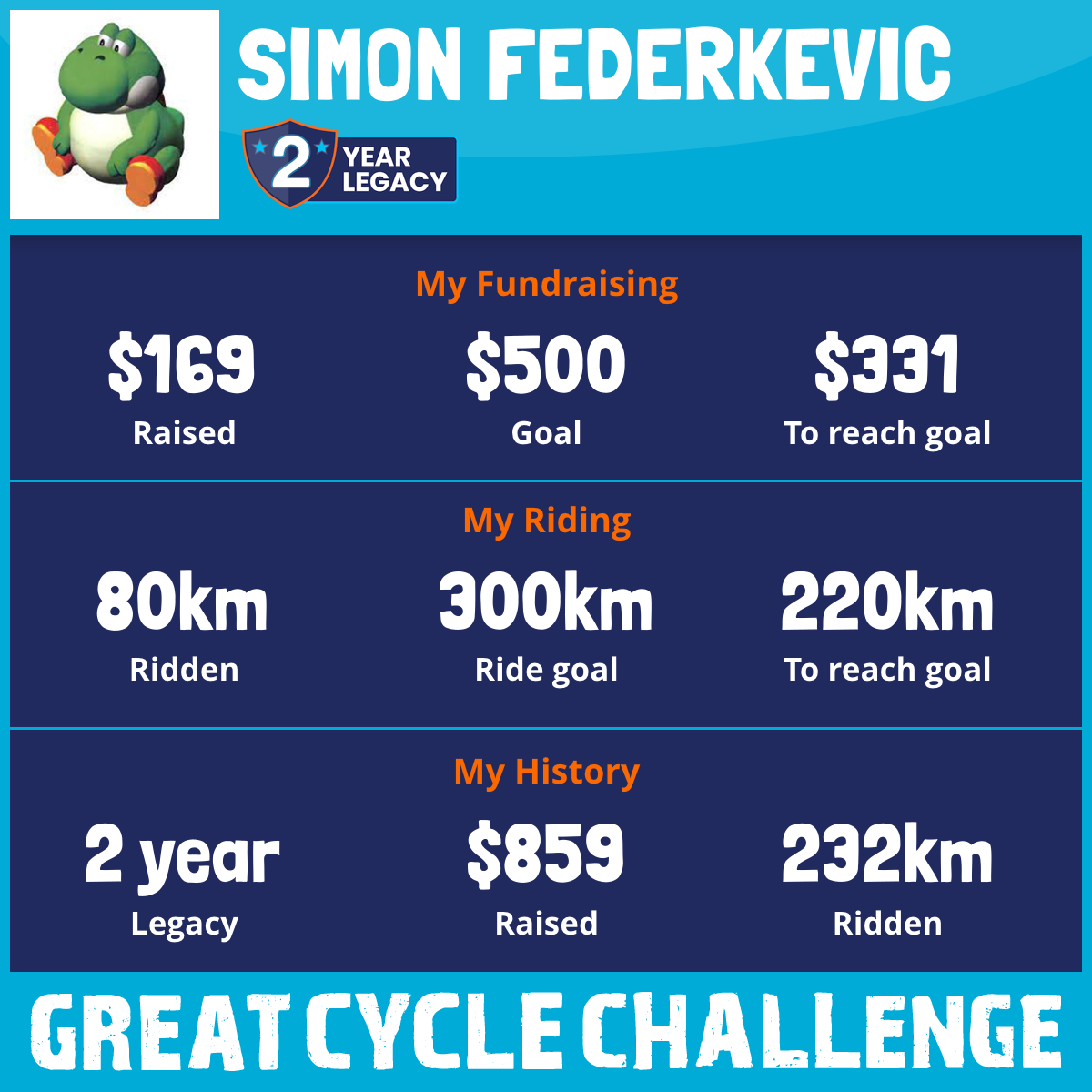 110 km Ridden$169 Raised2025