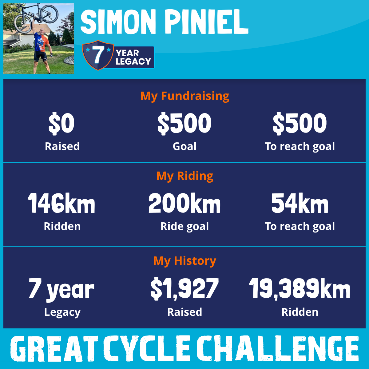 I'll ride 1,000km in August to raise $1,000, and it's my 6th year partaking.