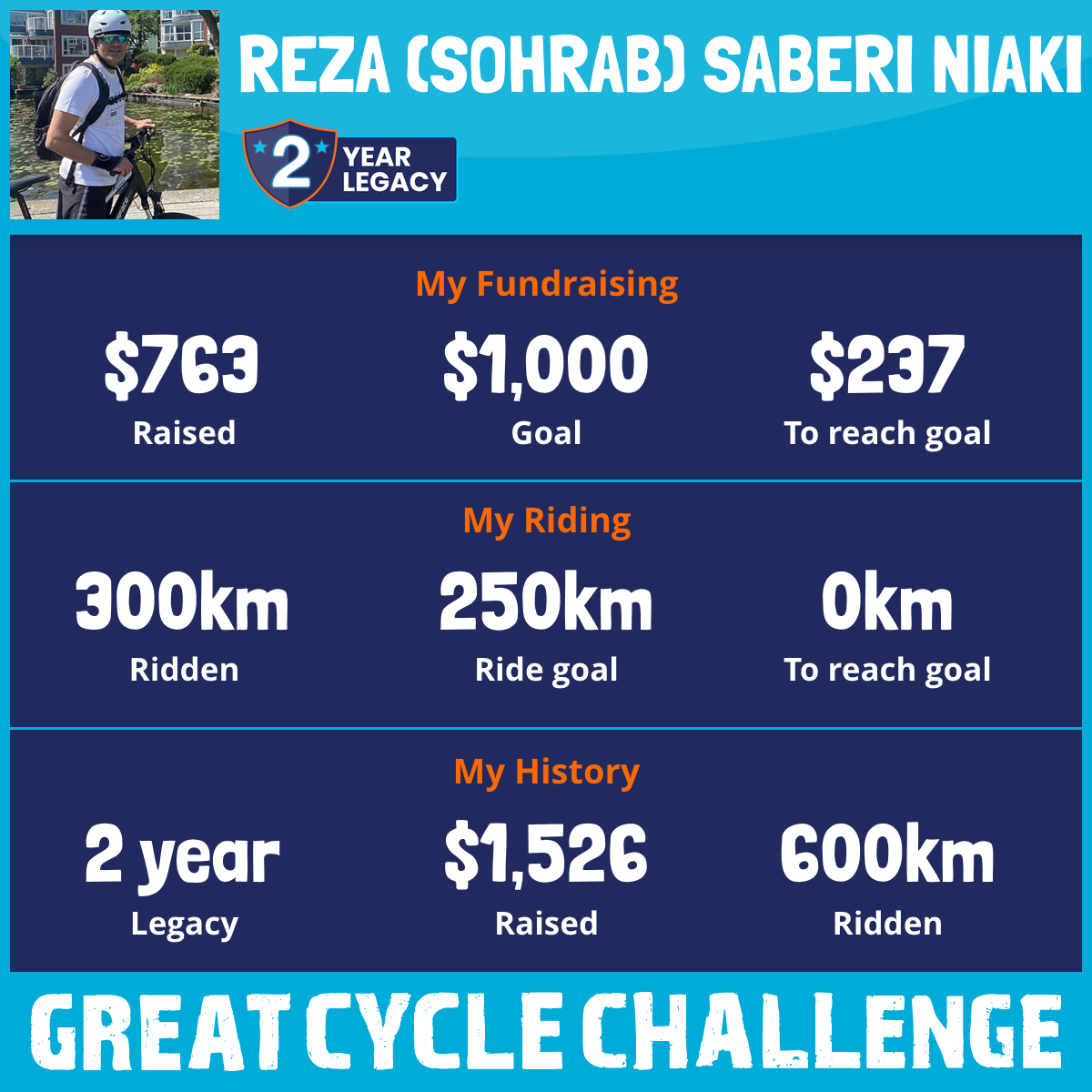300 km Ridden$763 Raised2025