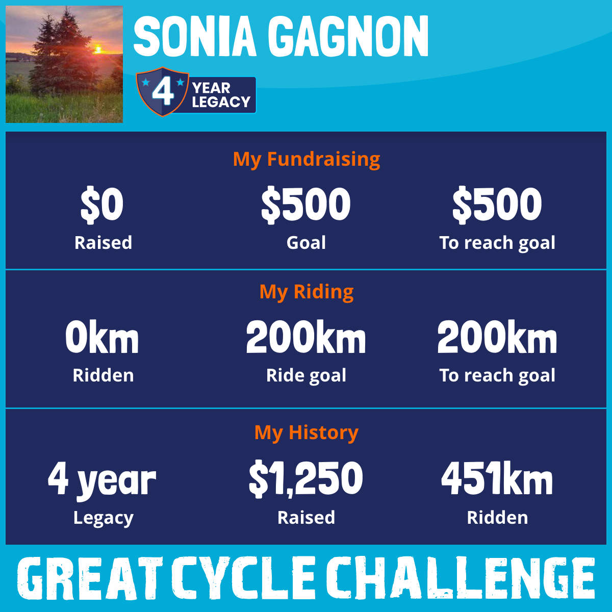 Cette année, je me suis engagée à pédaler 150 kilomètres et ramasser 500 $ en dons.
