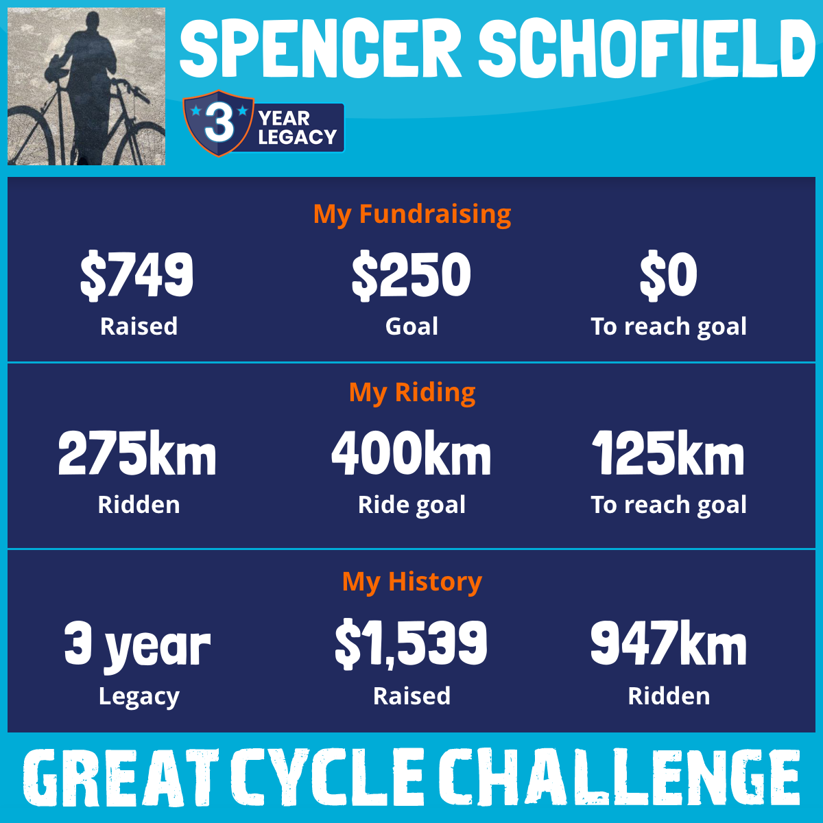 441 km Ridden$749 Raised2025