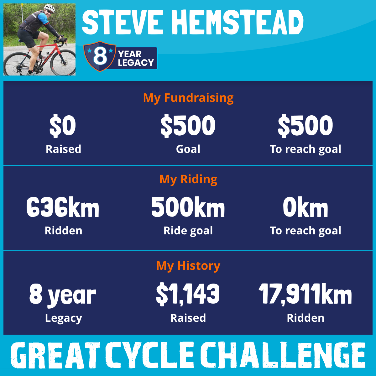 3,268 km Ridden$124 Raised2024