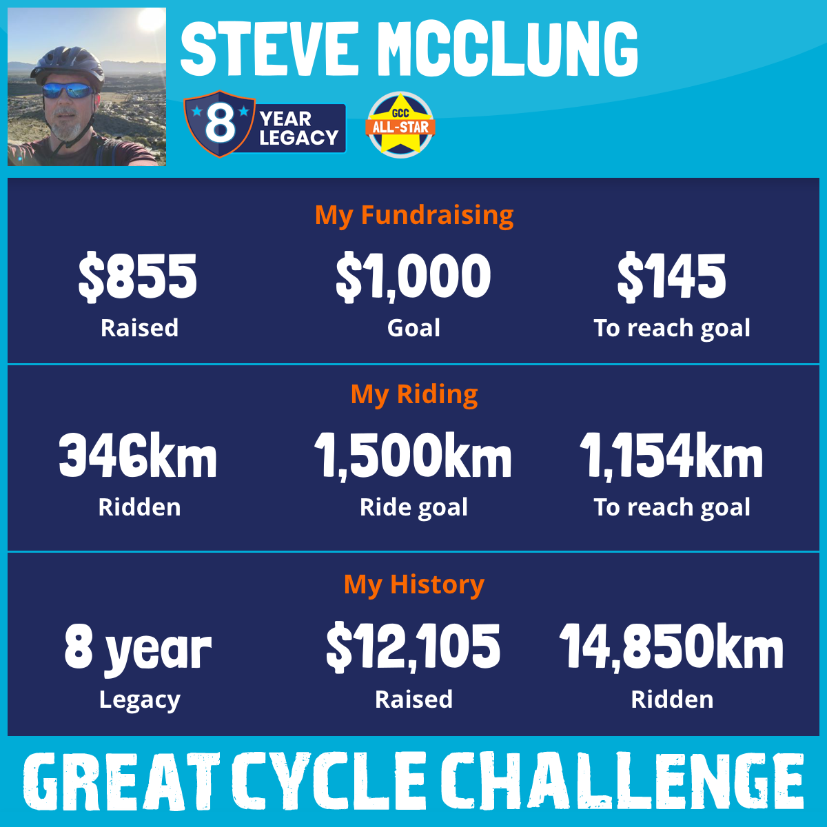 4,983 km Ridden$1,680 Raised2023