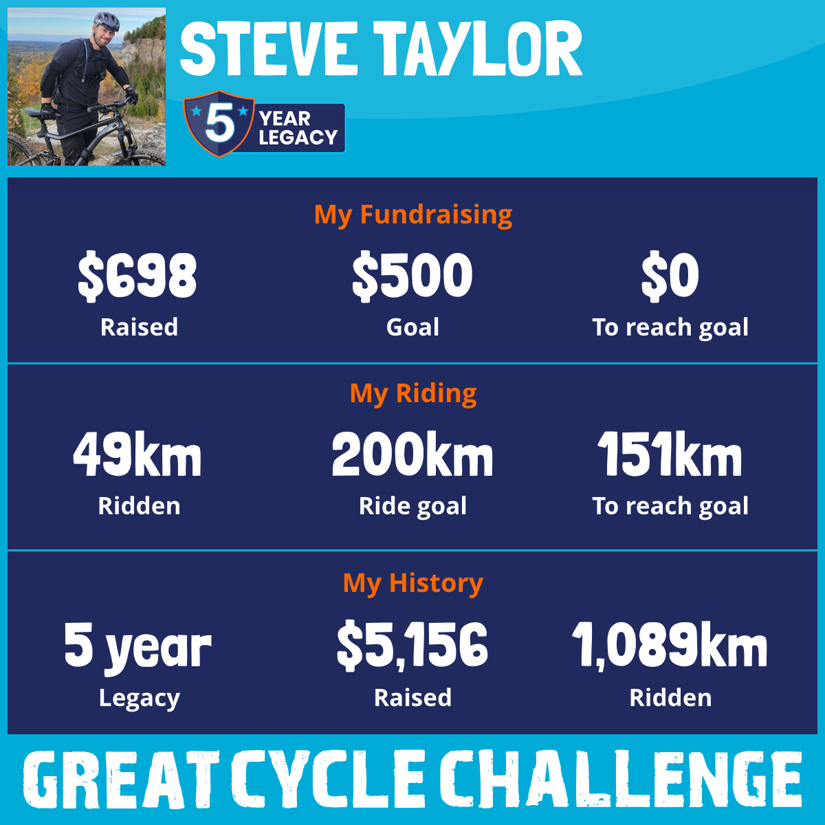 168 km Ridden$698 Raised2025