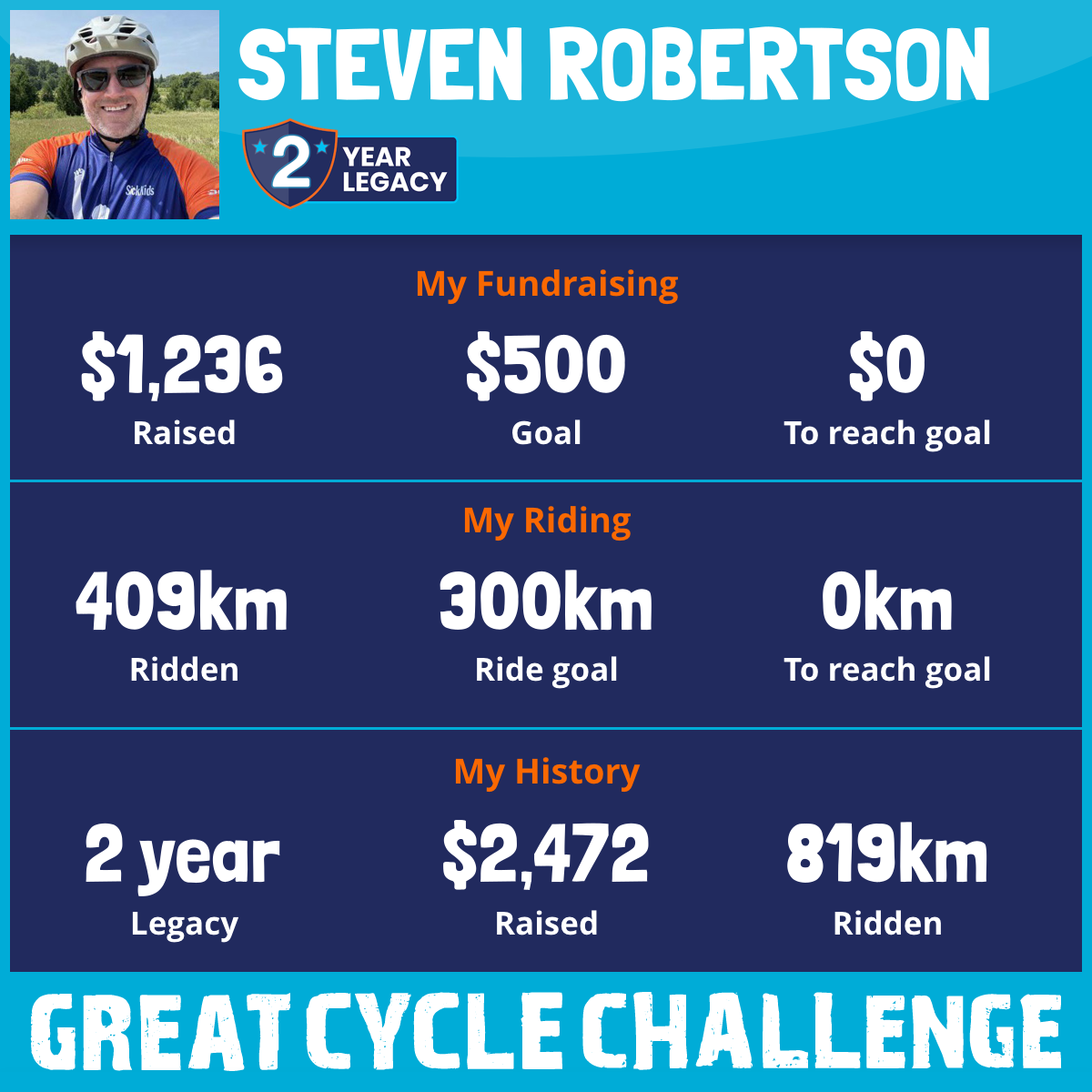 409 km Ridden$1,236 Raised2025