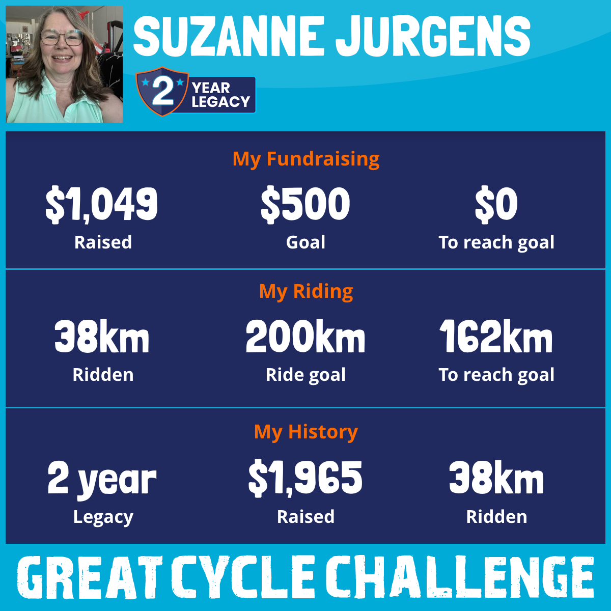 38 km Ridden$1,101 Raised2026