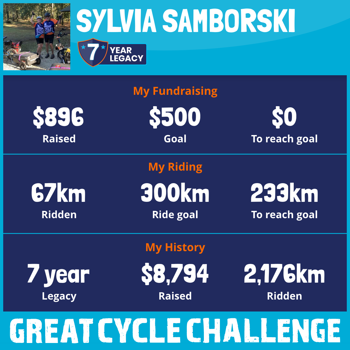 The link: https://greatcyclechallenge.ca/Riders/SylviaSamborski1