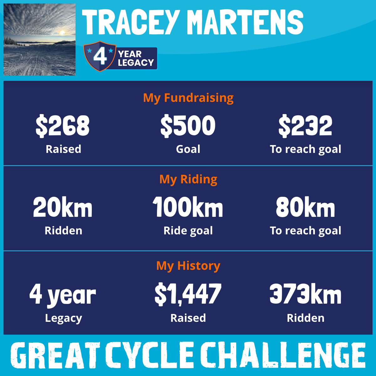 123 km Ridden$341 Raised2026