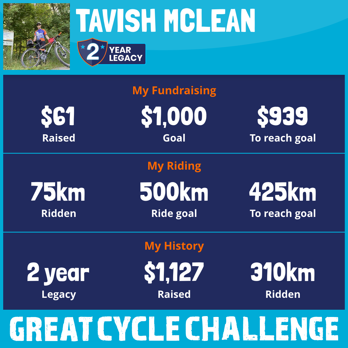 77 km Ridden$61 Raised2026