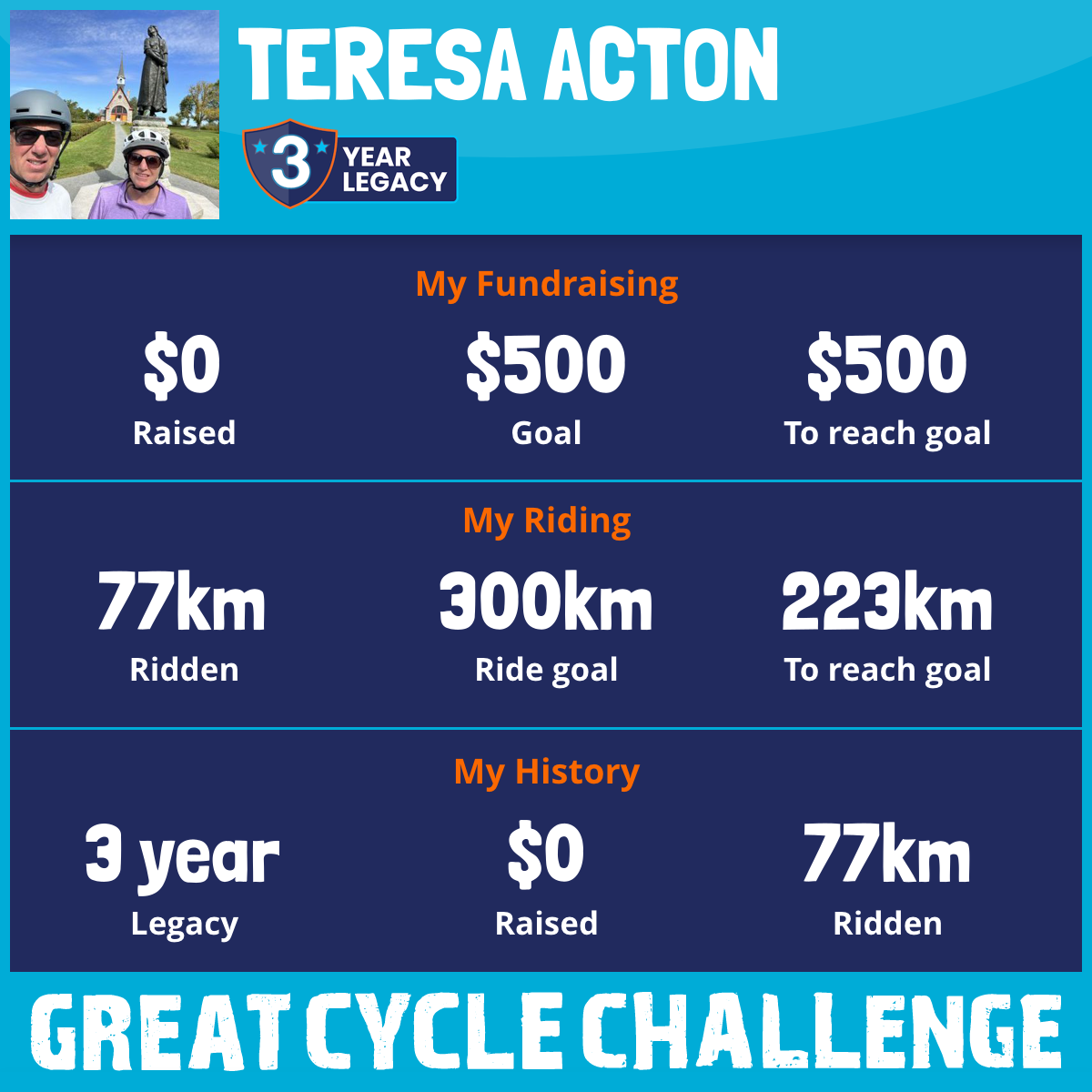 I am riding 300 km for Teresa. Please sponsor me and support my challenge to fight kids' cancer and save little lives.