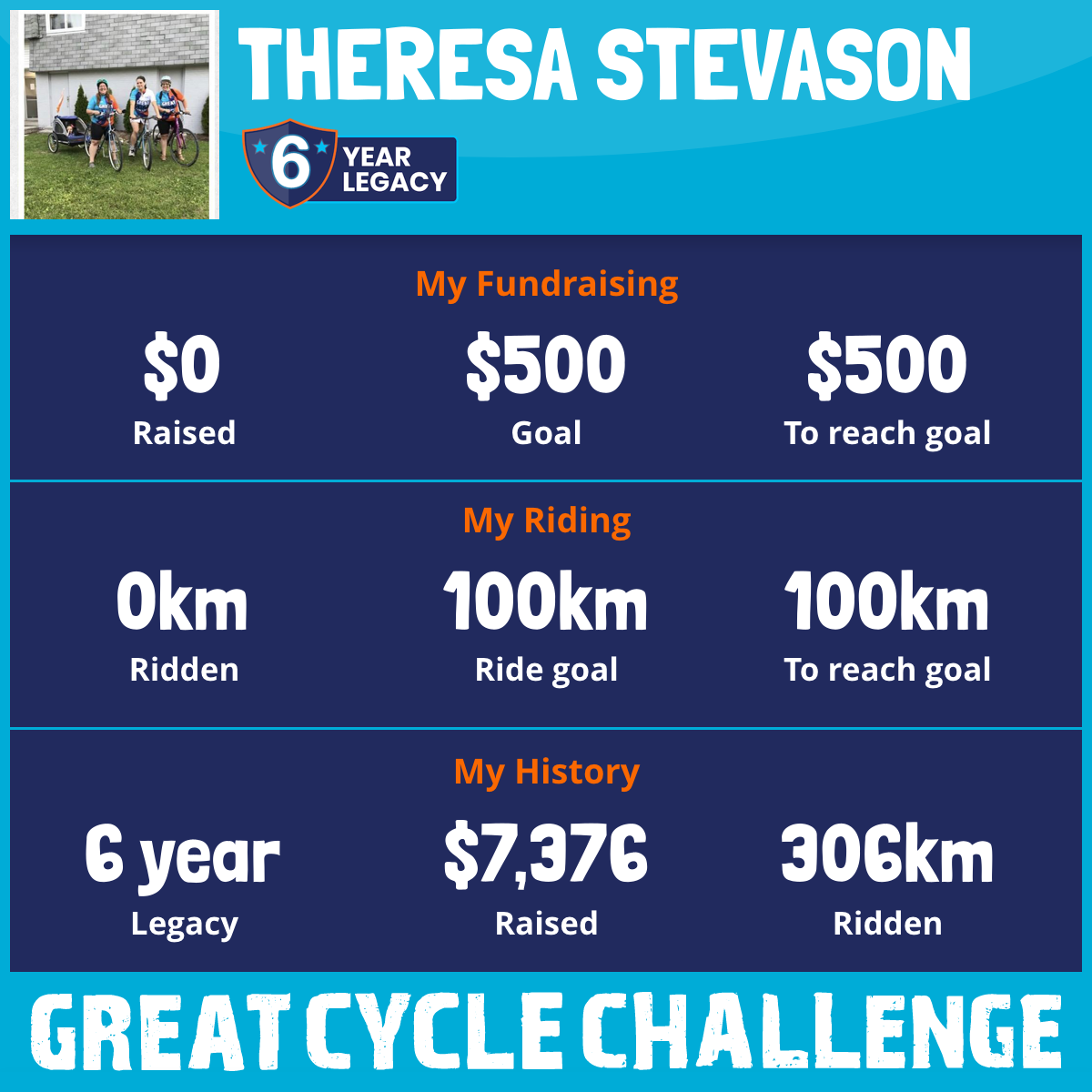 I am riding 100 km in memory of Bill Stevason. Please sponsor me and support my challenge to fight kids' cancer and save little lives.