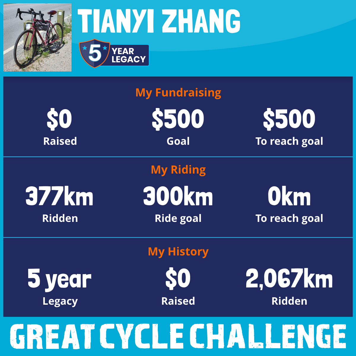 I am riding 300 km in memory of my uncle, Skyone. Please sponsor me and support my challenge to fight kids' cancer and save little lives.