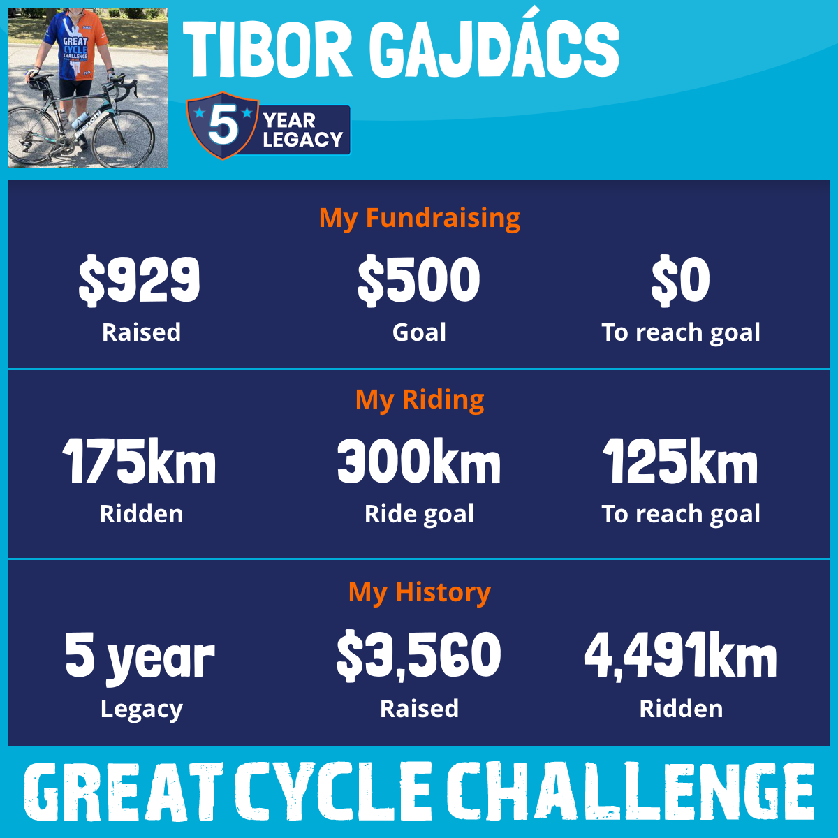 1,301 km Ridden$1,017 Raised2026