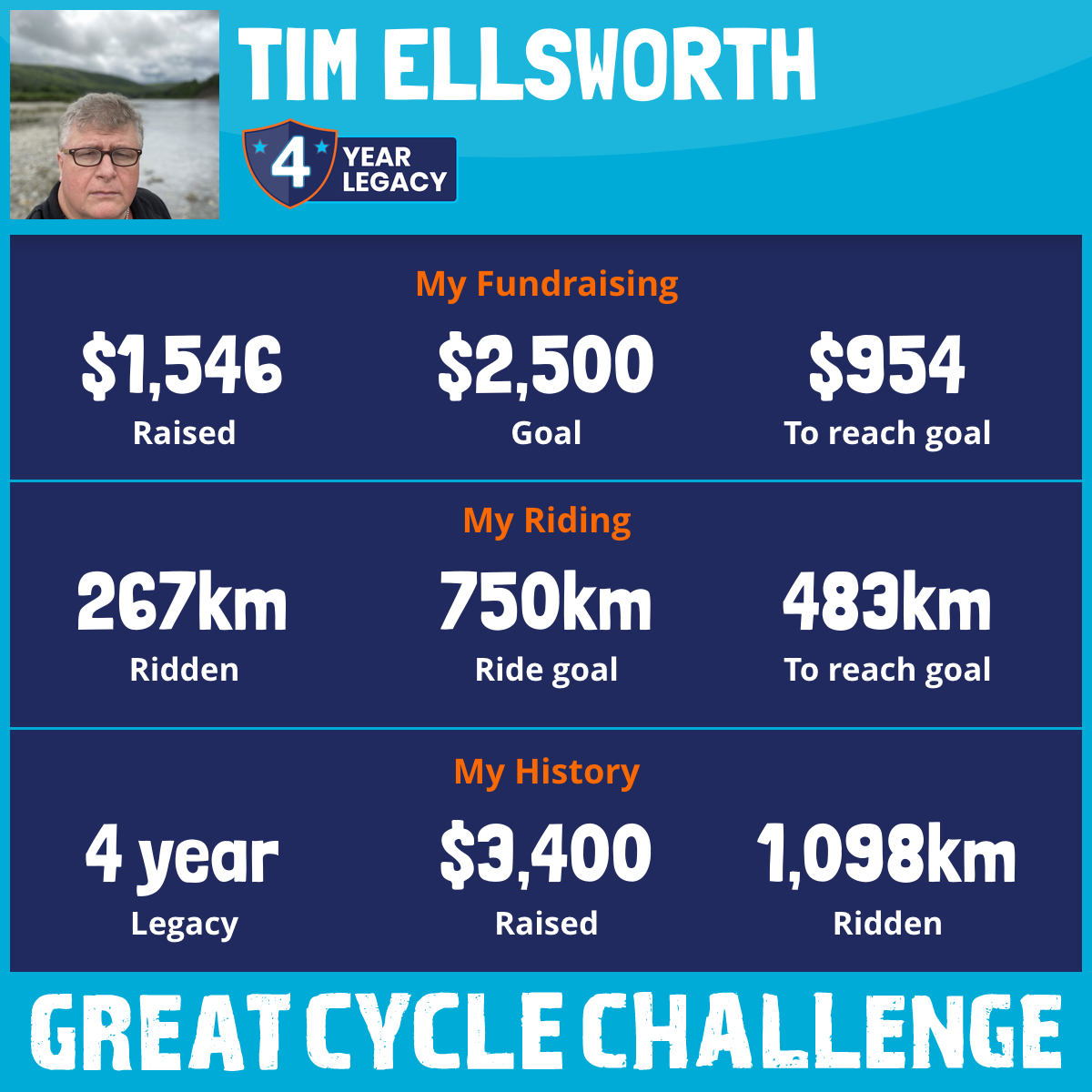 215 km Ridden$1,174 Raised2024
