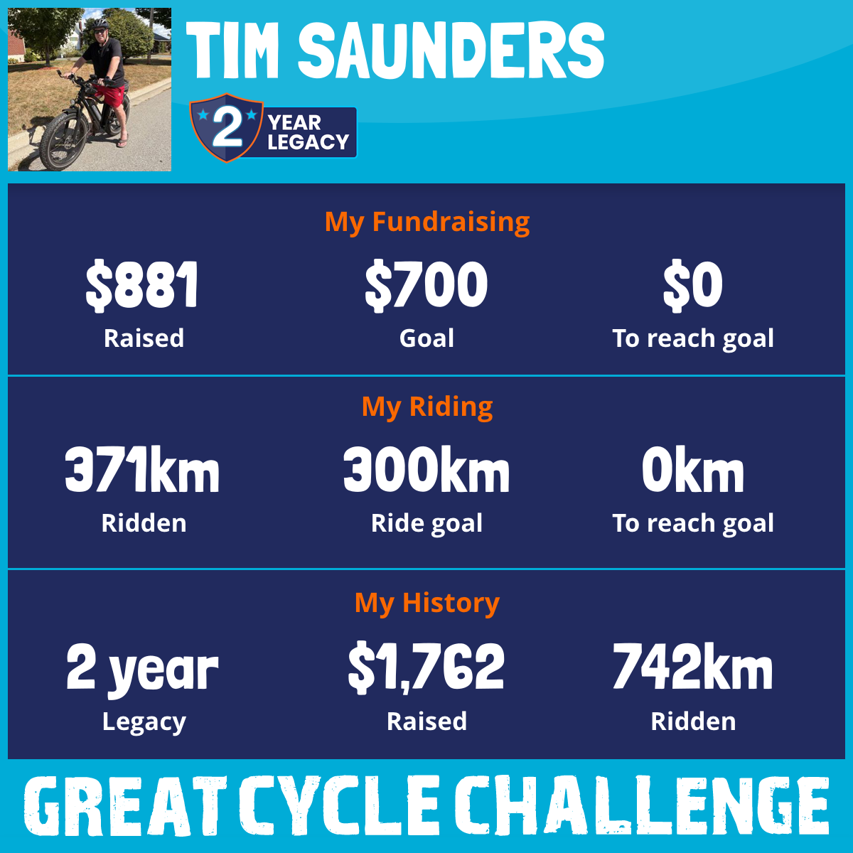 371 km Ridden$881 Raised2026