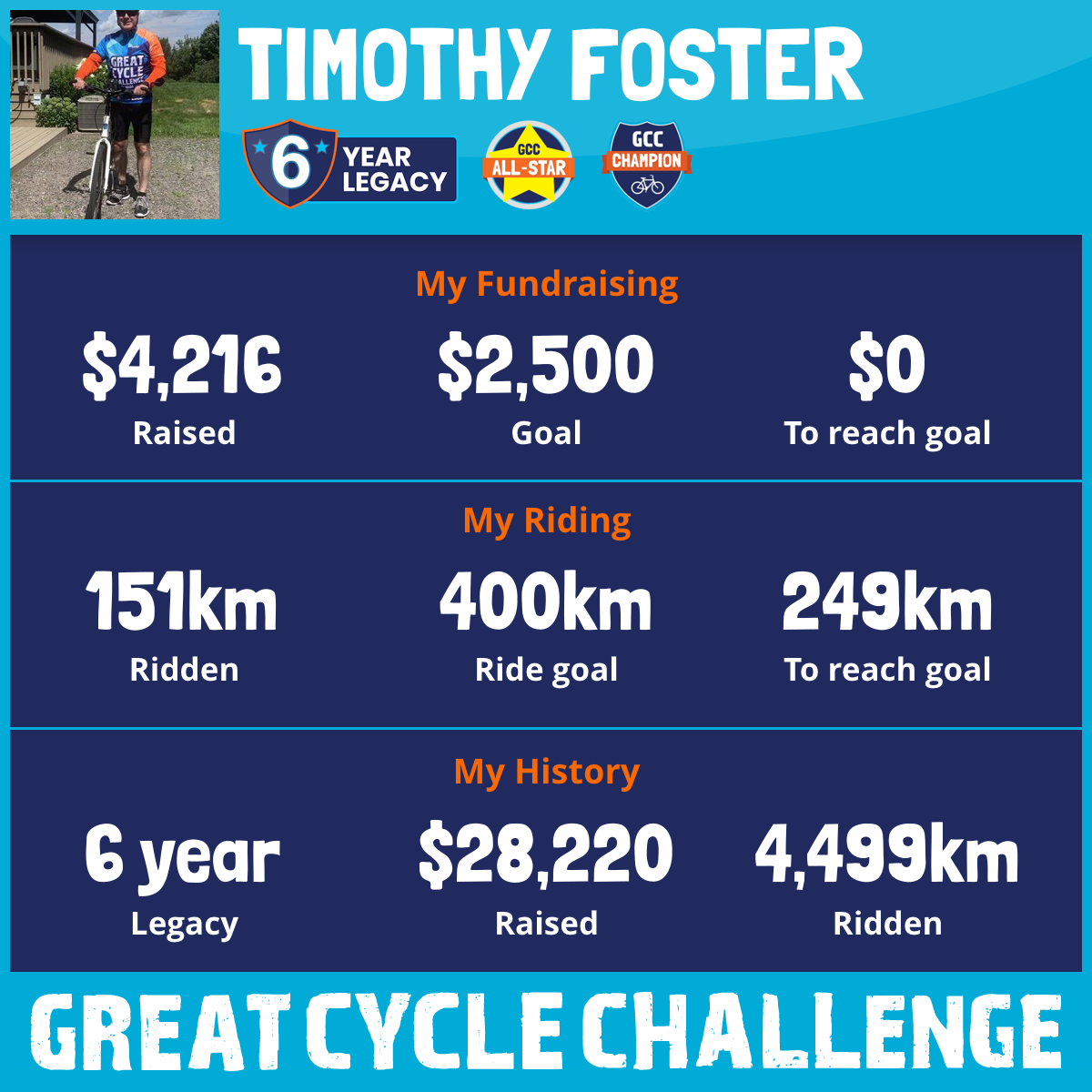 1,004 km Ridden$5,994 Raised2023