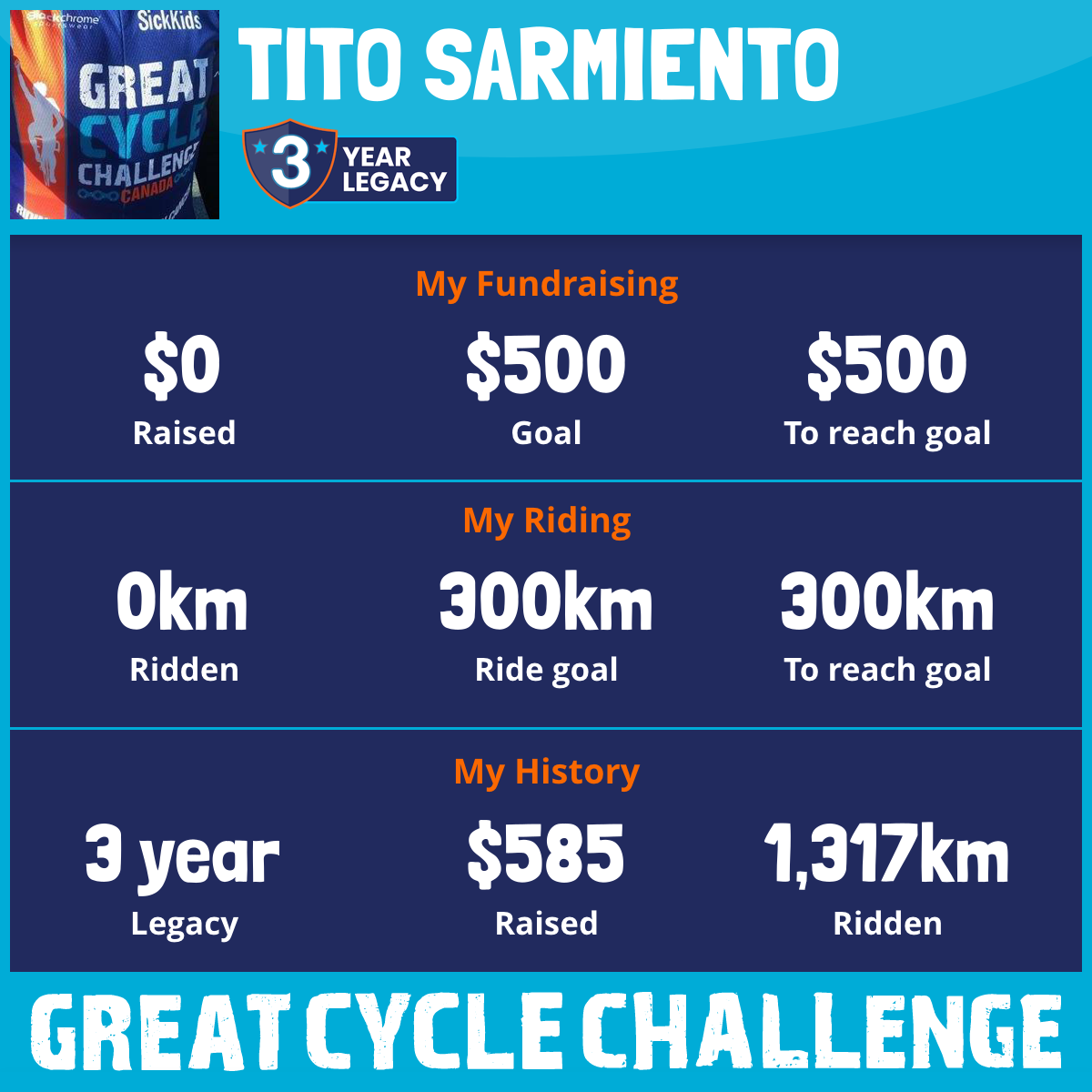 852 km Ridden$585 Raised2016