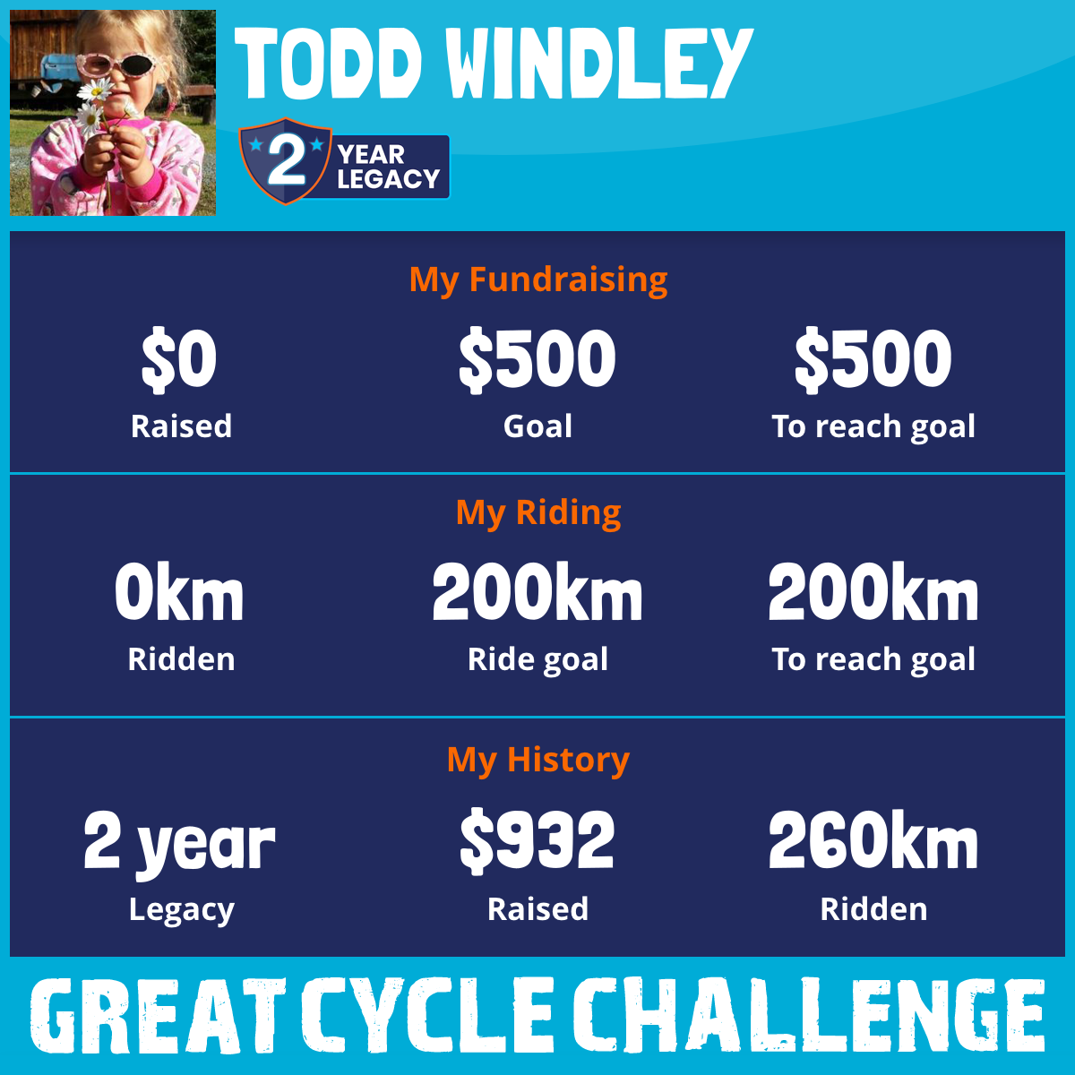 I am riding 200 km in memory of my daughter, Arwen. Please sponsor me and support my challenge to fight kids' cancer and save little lives.