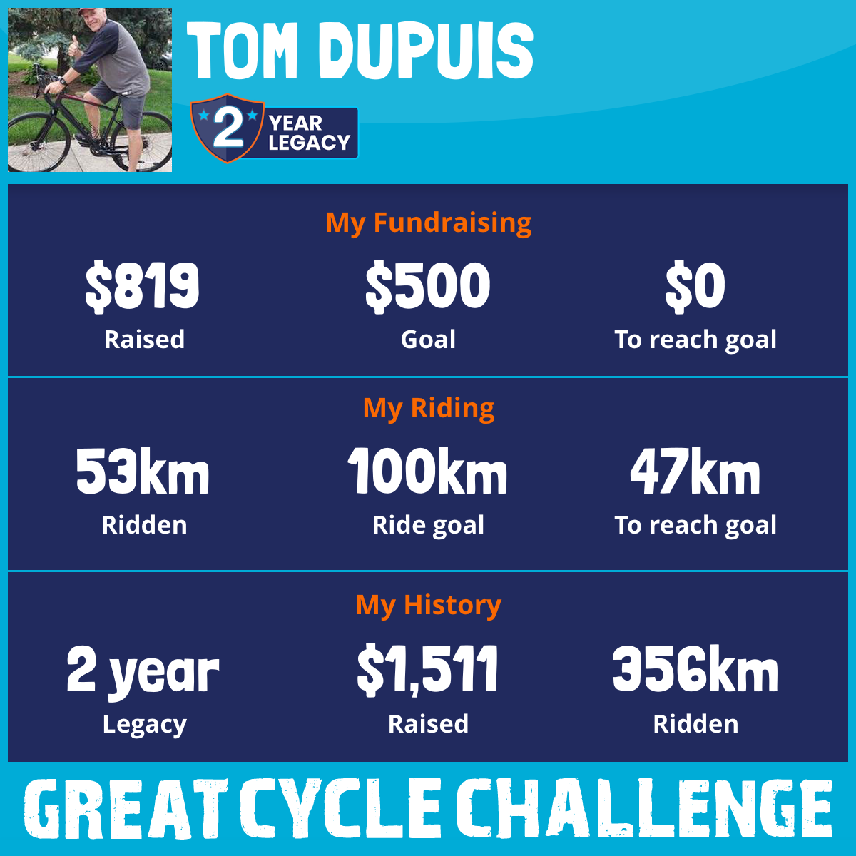 259 km Ridden$1,114 Raised2026