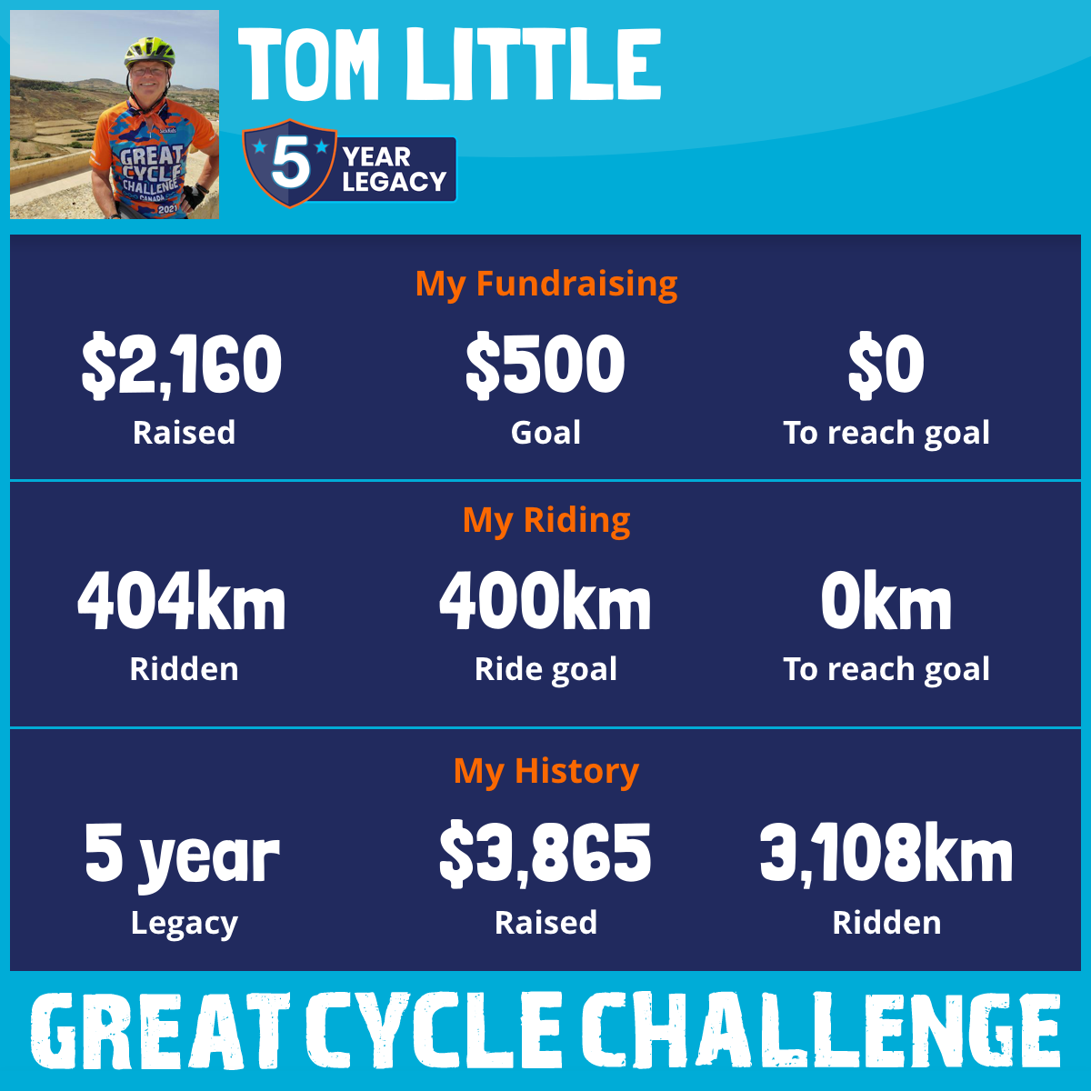 1,051 km Ridden$625 Raised2021