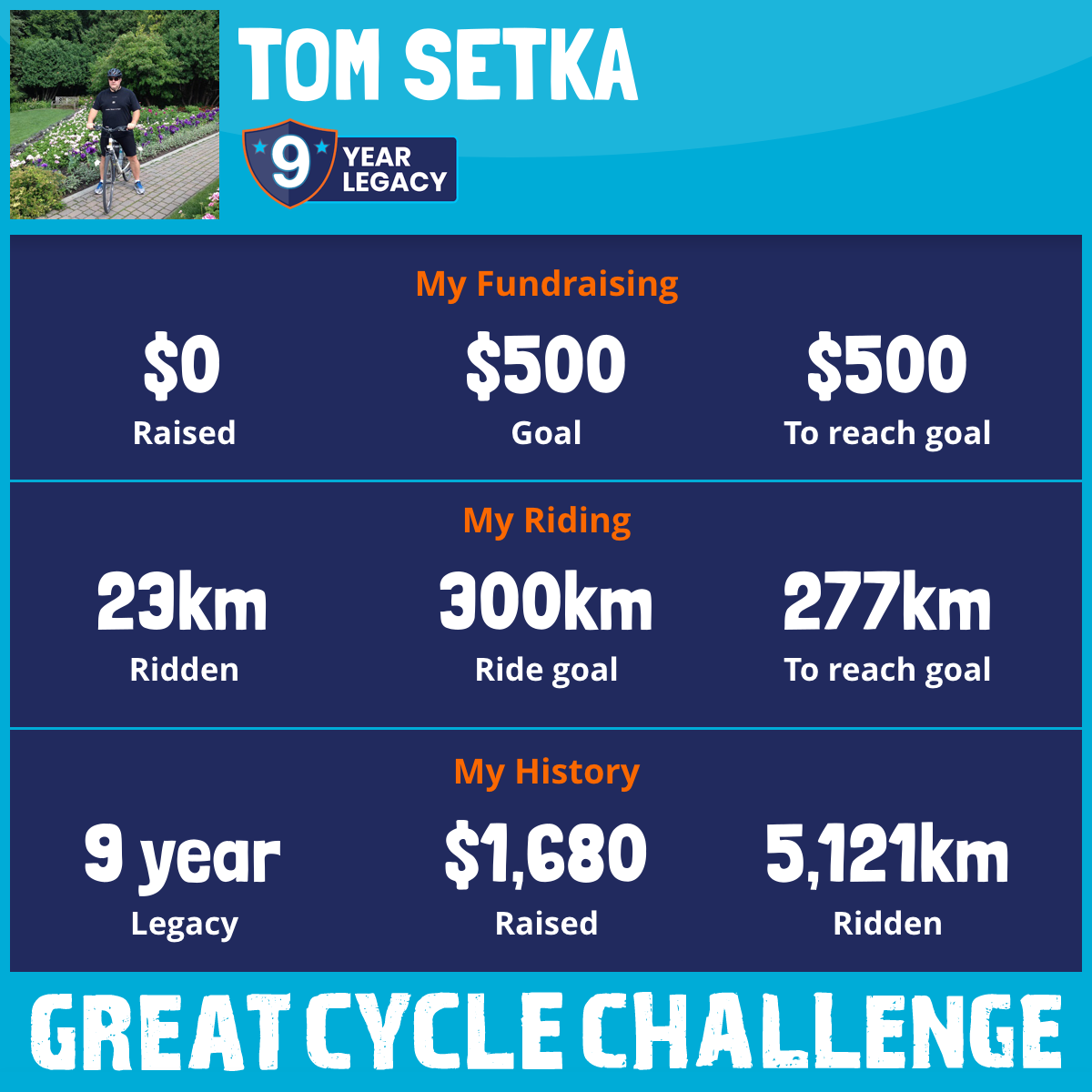 Once again this August, I’m taking part in the Great Cycle Challenge to fight kids' cancer! My goal is to pedal 300 kilometers throughout the month.