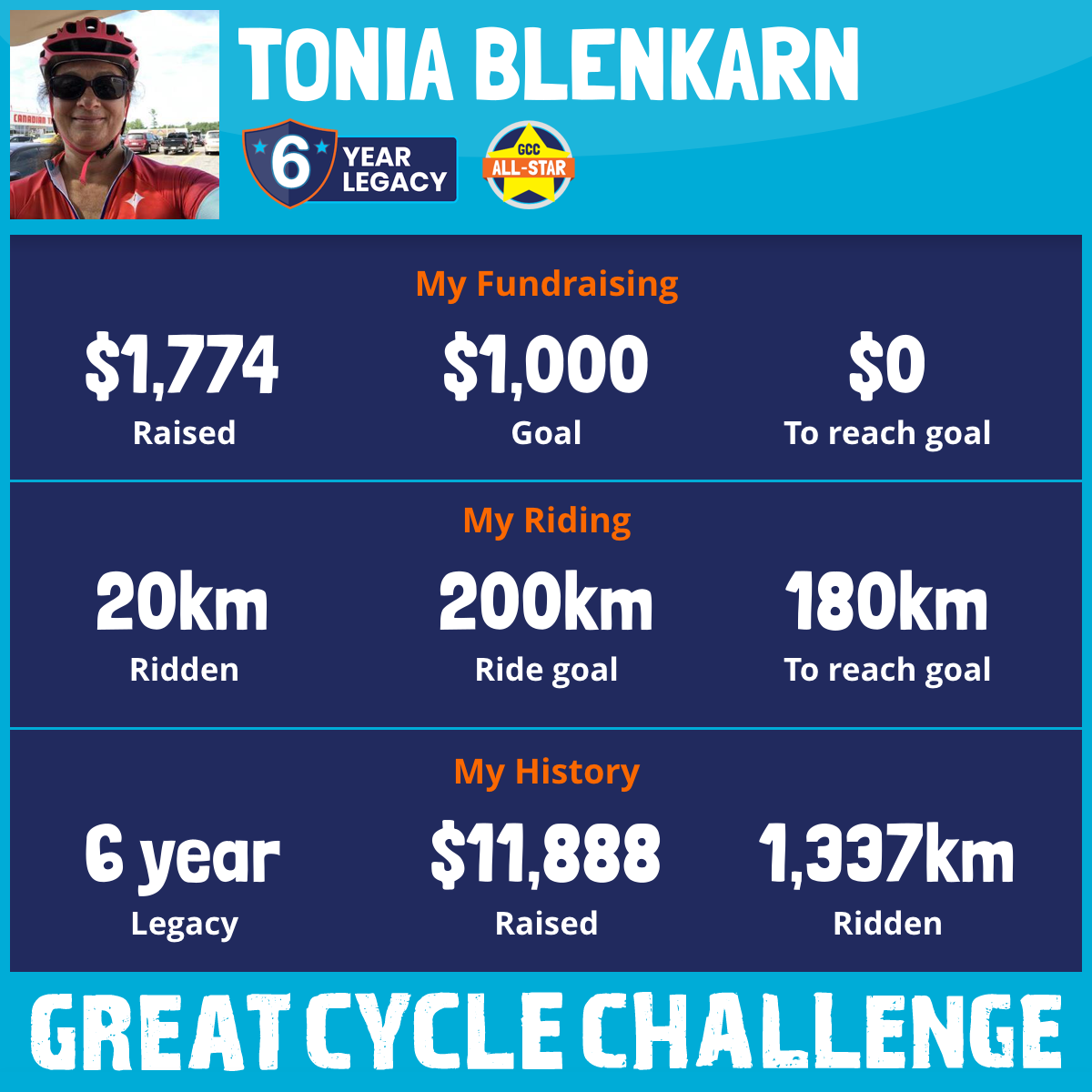 401 km Ridden$1,788 Raised2020