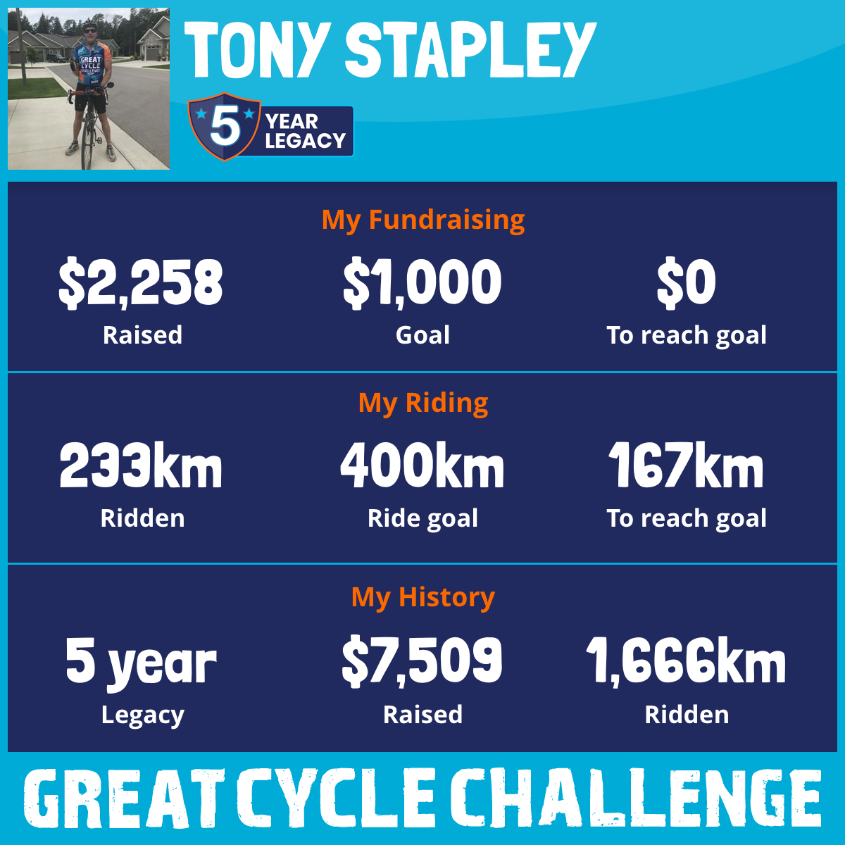 431 km Ridden$2,258 Raised2026