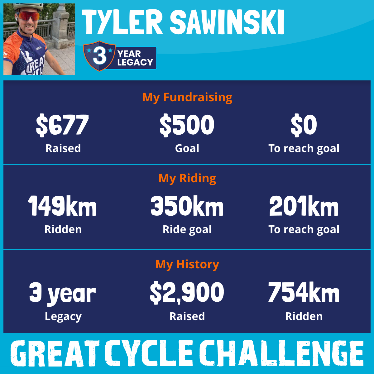 351 km Ridden$801 Raised2025