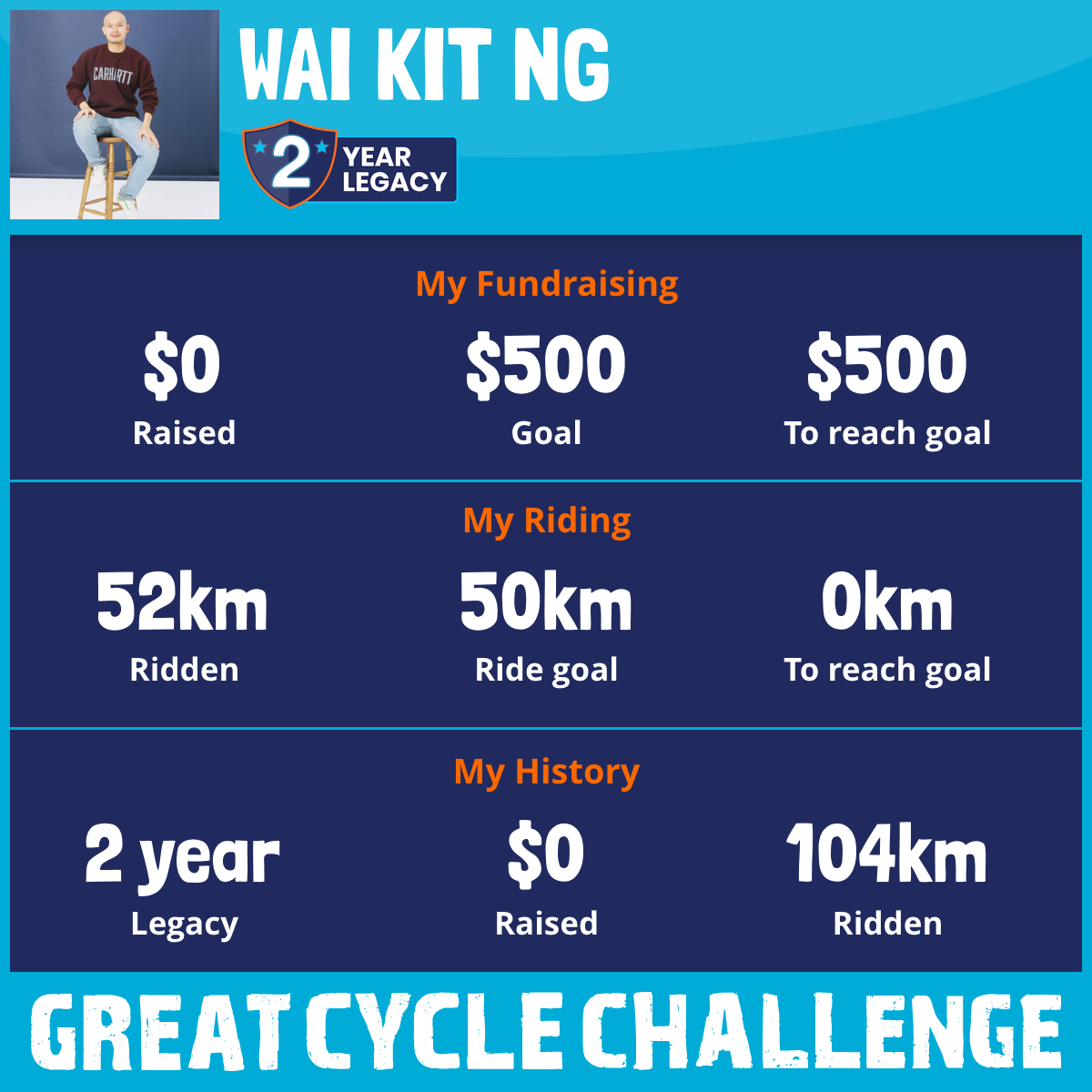 I am riding 50 km for my dad, Ng Yoke Pun. Please sponsor me and support my challenge to fight kids' cancer and save little lives.
