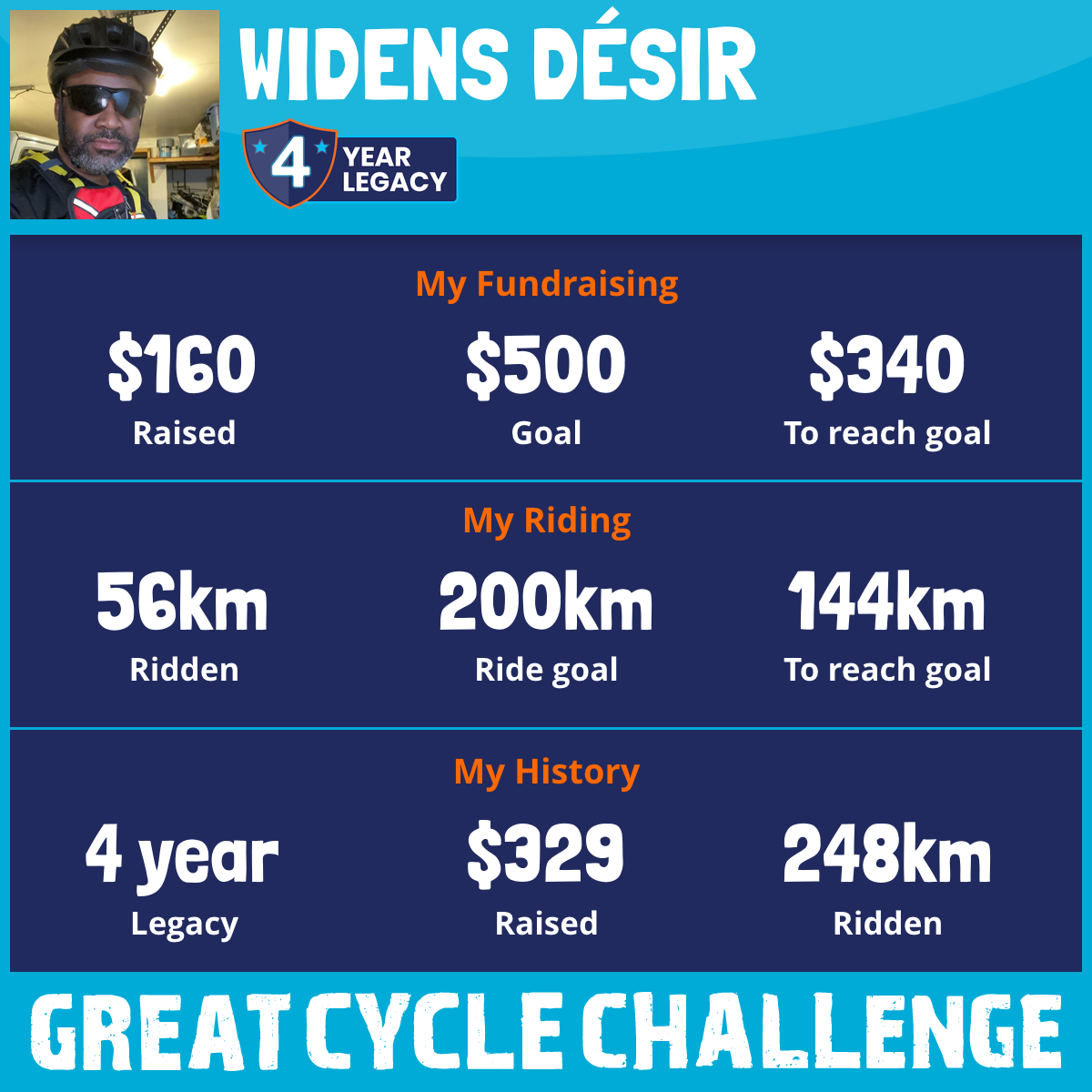 56 km Ridden$160 Raised2026