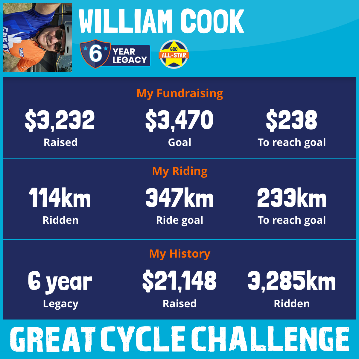 1,232 km Ridden$4,558 Raised2024